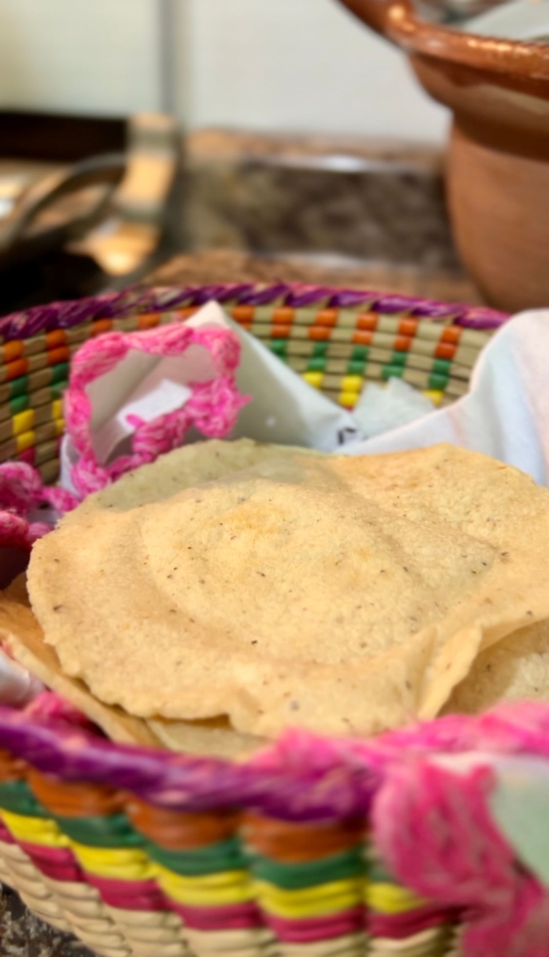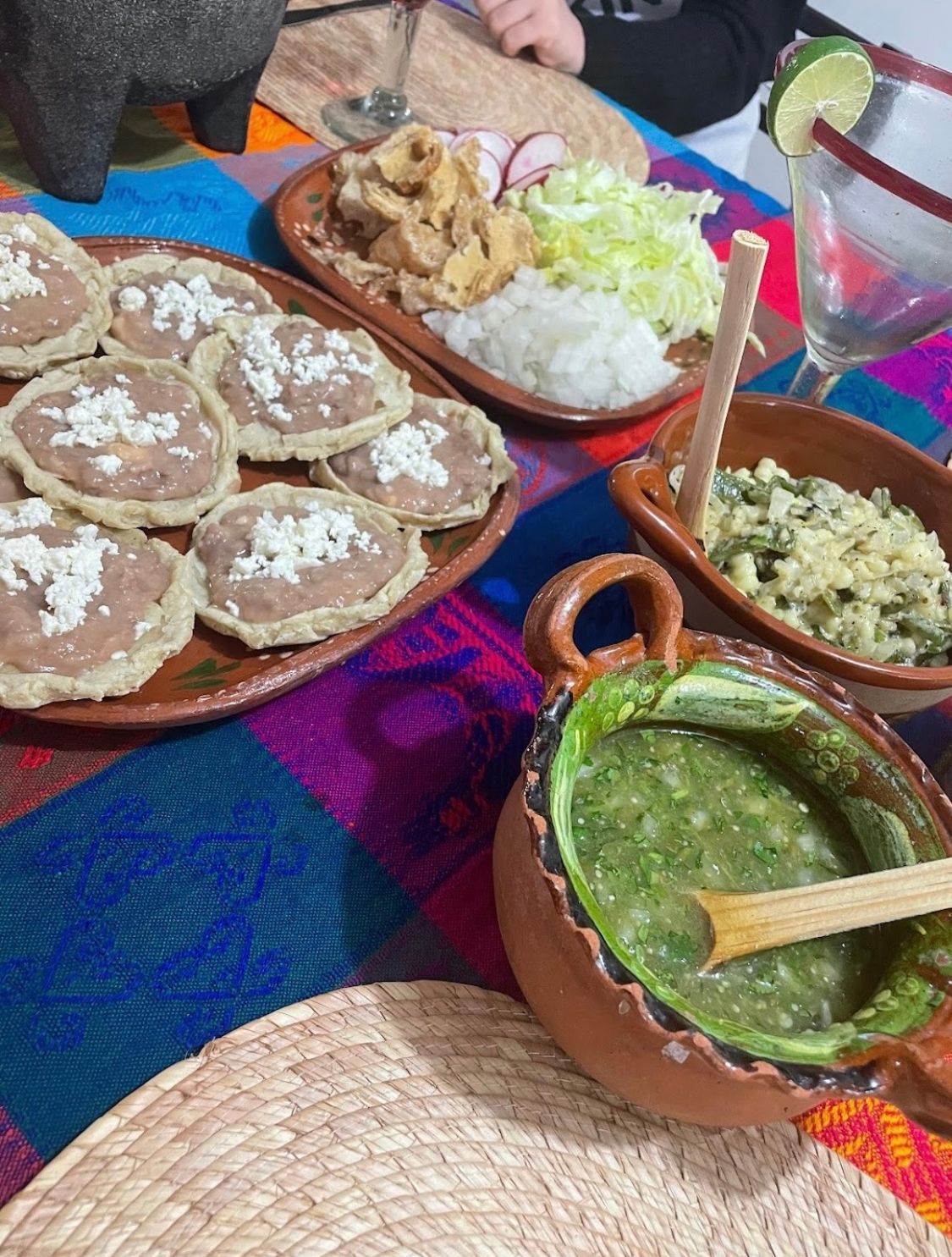 - Mom’s favorites: Mole Poblano + salsas + tortillas + Poblano with cream + guacamole + pico de gallo
